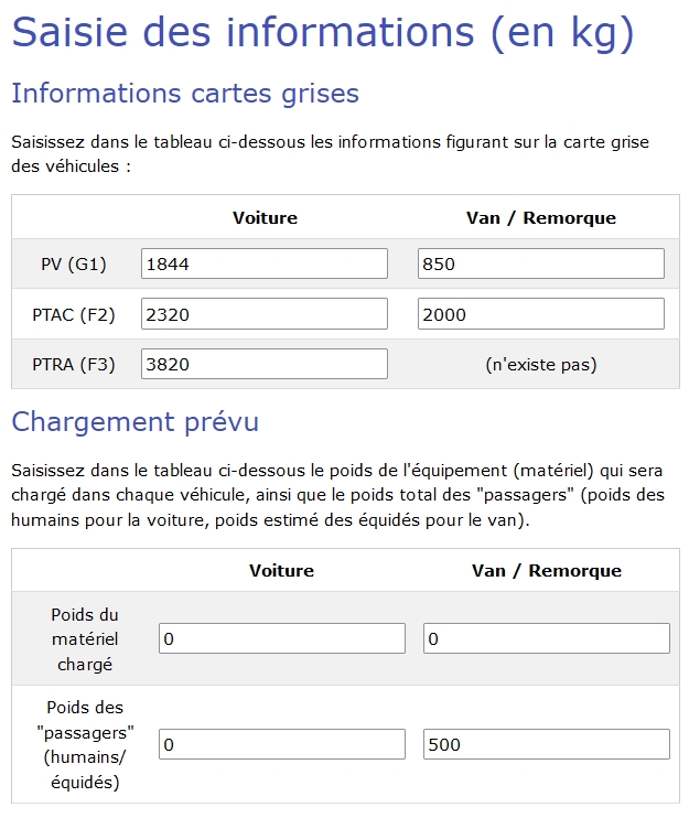Là, techniquement, avec un seul cheval dans le van, le véhicule 1 peut le tracter en toute légalité puisque 850 + 500 = 1350kg, on respecte tout à fait le poids tractable (Dodu pourrait même faire 600 kg que ça passerait encore) et véhicule 2 peut tracter légalement le van à vide puisque seulement 850kg, on est encore dans les 1000 kg tractables.