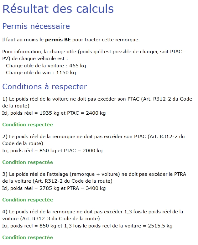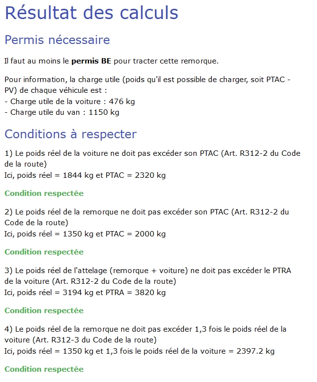Vérifie bien mes chiffres car comme ton message est très compact et peu aéré, j'ai du m'y reprendre à plusieurs fois. Tu peux faire tes propres simulations sur le site, car il suffit parfois dans certains cas d'ajouter un peu de poids de conducteur, ou de corriger un poids à vide théorique par un poids à vide réel pour avoir des surprises.