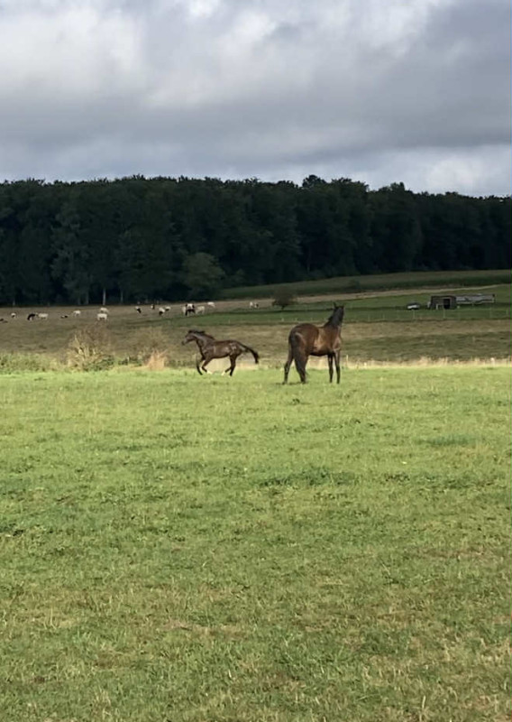 Le laché des fauves ce matin. Je ne savais pas que j'avais acheté un poulain d'obstacle