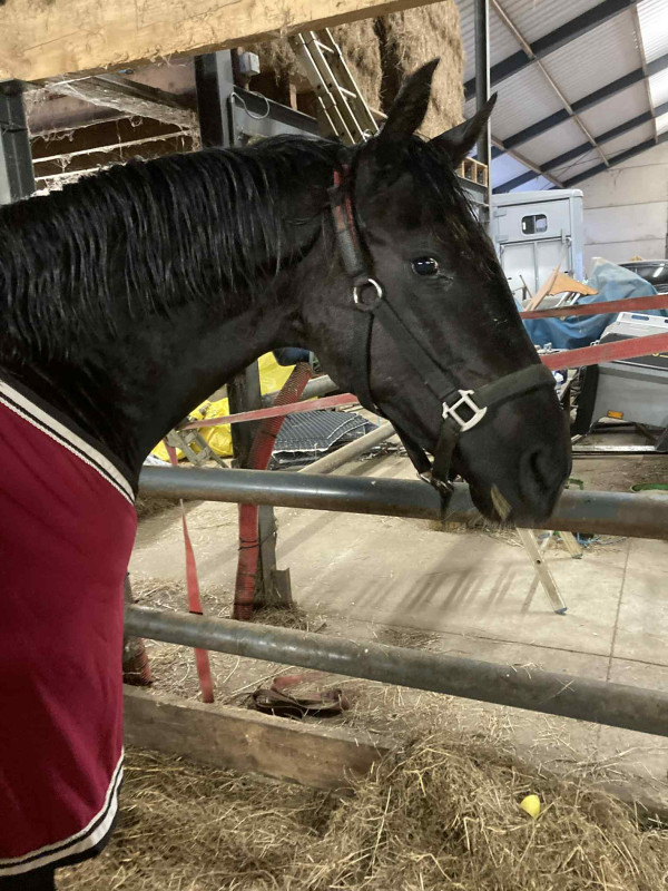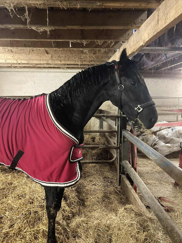 2. Jeudi 6 février normalement un poulain Maximus, étalon noir aussi d'1m71. Actuellement sous la selle de Justin Verboomen. Le point noir ici c'est qu'il est déjà castré (j'aimerais le laisser entier le plus longtemps possible pour que les hormones fassent leur taf pendant la croissance) - Annulé, poulain déjà castré