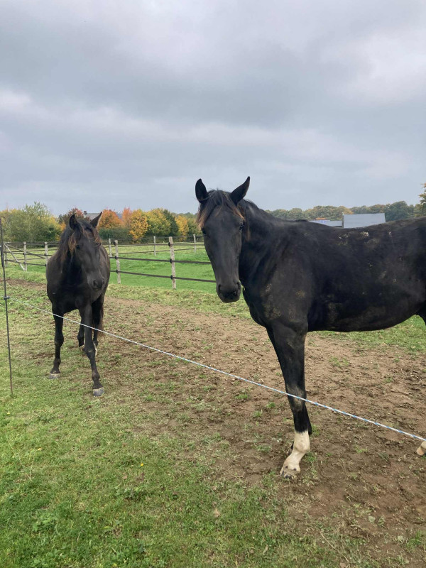 1. Un poulain noir par Jameson RS2 (splendide grand étalon noir d'1m75) x mère par Bernay. Demain midi. J'ai un petit doute sur la taille de la jument mais à voir en vrai. Photos p1.