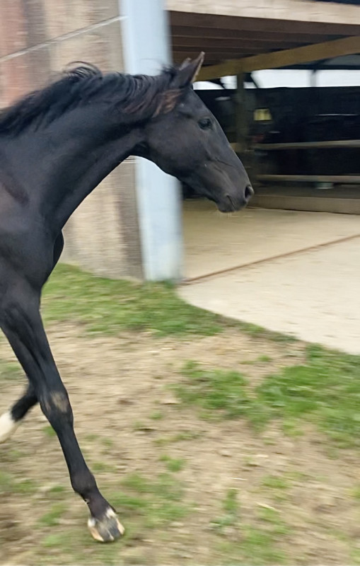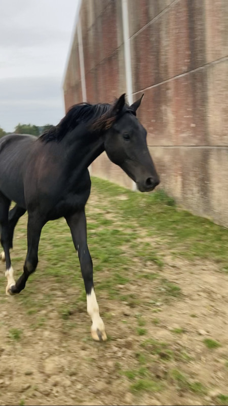 2. Jeudi 6 février normalement un poulain Maximus, étalon noir aussi d'1m71. Actuellement sous la selle de Justin Verboomen. Le point noir ici c'est qu'il est déjà castré (j'aimerais le laisser entier le plus longtemps possible pour que les hormones fassent leur taf pendant la croissance) - Annulé, poulain déjà castré