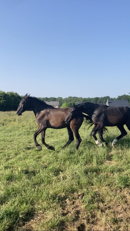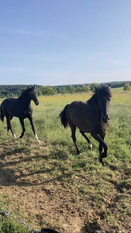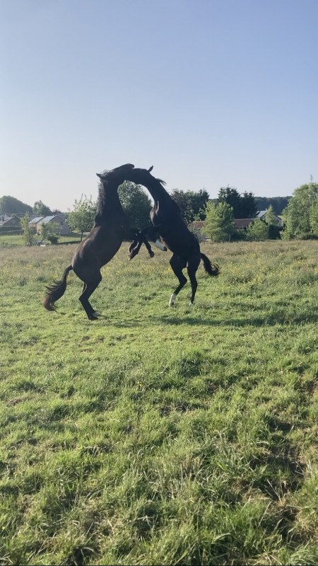 1. Un poulain noir par Jameson RS2 (splendide grand étalon noir d'1m75) x mère par Bernay. Demain midi. J'ai un petit doute sur la taille de la jument mais à voir en vrai. Photos p1.