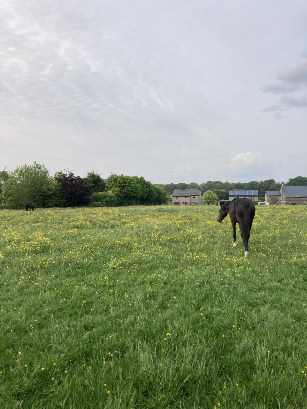 Ici dans cette écurie ils ont la chance de pouvoir sortir tous les jours au pré, ca leur fait un bien fou, ce qui manquait dans l'autre écurie. Et honnêtement, je pense qu'ils sentent aussi si nous en tant qu'humain nous sommes bien à un endroit, et ce n'était plus le cas dans l'écurie précédente.