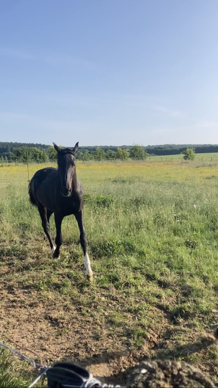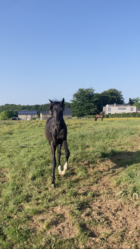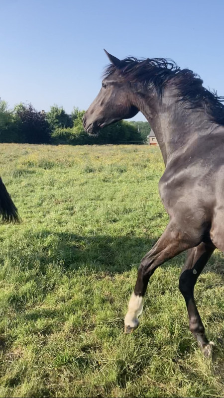2. Jeudi 6 février normalement un poulain Maximus, étalon noir aussi d'1m71. Actuellement sous la selle de Justin Verboomen. Le point noir ici c'est qu'il est déjà castré (j'aimerais le laisser entier le plus longtemps possible pour que les hormones fassent leur taf pendant la croissance) - Annulé, poulain déjà castré