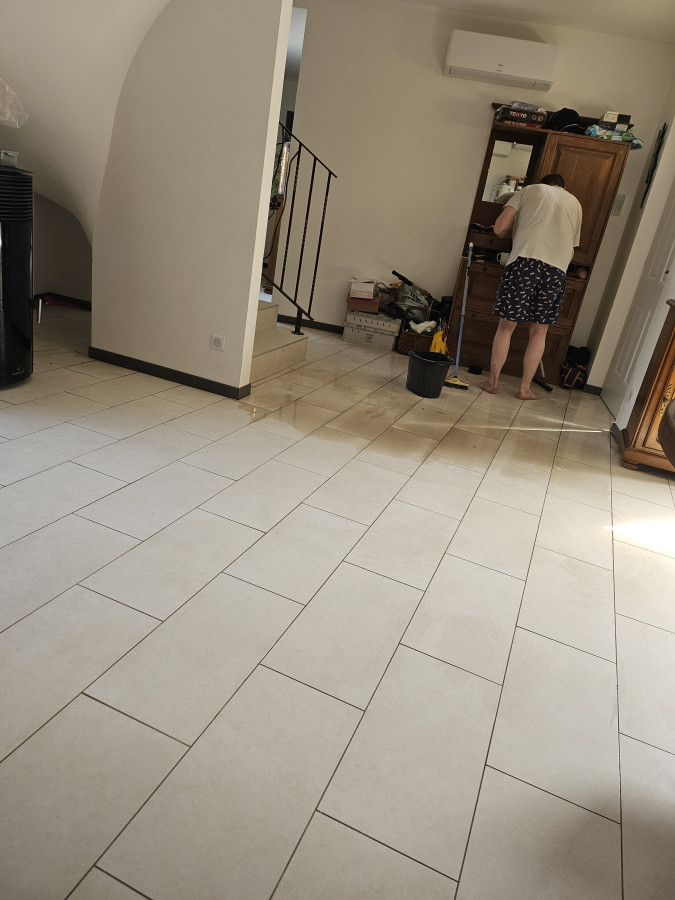Alors histoire de se compliquer la tâche, comme on est 2 boulets avec Fab, on a pris une grande baraque, le proprio (mon oncle) a eu au rabais du carrelage provenant d'un grand hôtel de la région, hôtel disposant d'un spa... je vous laisse deviner qui se tape un carrelage hyper poreux si bien que quand ma meilleure amie vient avec sa fille, elle ne la met pas en collant ou chaussettes trop fines sinon c'est fusillés