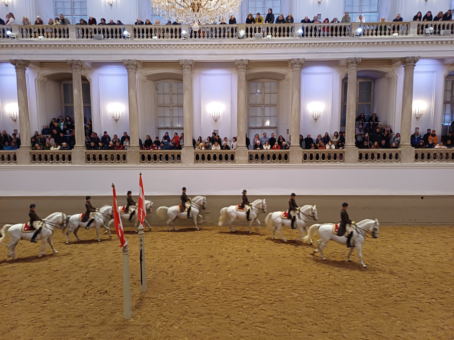 Le lendemain on a assisté à une demo de l'école d'équitation cétait magique. Je les avais déjà vu en Belgique mais là dans ce cadre historique avec la musique... Même les néophytes ont adoré. C'est hors de prix par contre, on a pris des places debout à 36? et franchement c'était très bien. Les gens assis devant nous ont payé 100? de plus ça n'en valait pas la peine ils voyaient moins bien. Donc sauf craquage et place de l'empereur (en C) ça vaut pas le coup d'investir.