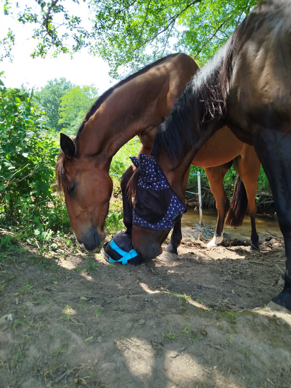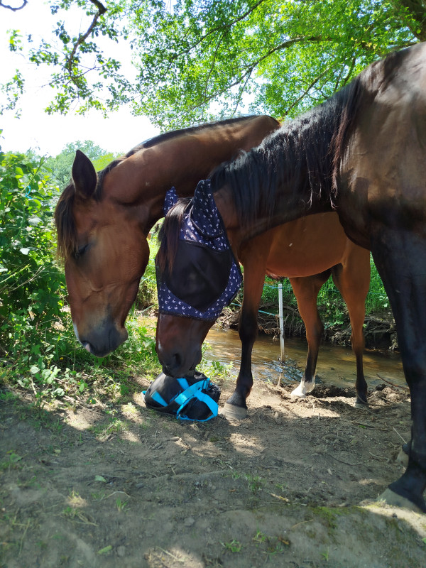 oh bah je suis pas pressée on ira a son rythme, si il veut qu'on ralentisse, on ralentira , en plus la c'etait juste broutage, et puis je voulais lui faire prendre une petite douche il faisait chaud mais très complique dans toute les direction, planté de chez planté. pour te dire même pour rentrer dans son paddock il voulait pas bouger