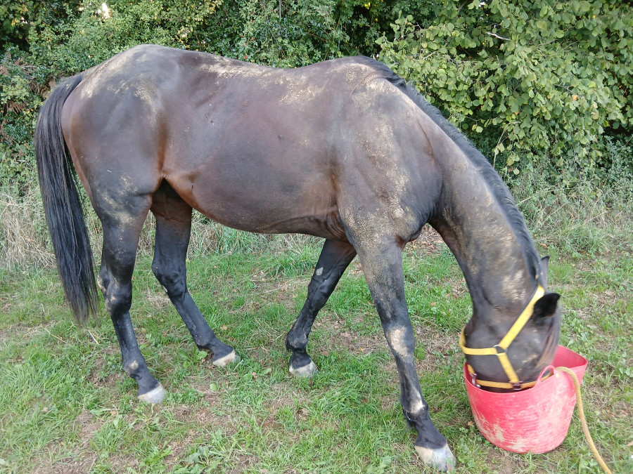 A peine sa couette enlevée , et une demi journée après. Voilà le retour du sangli-cheval