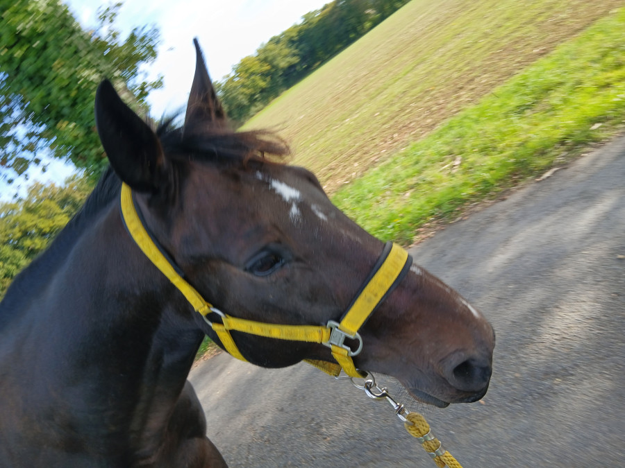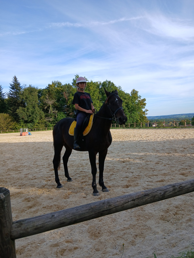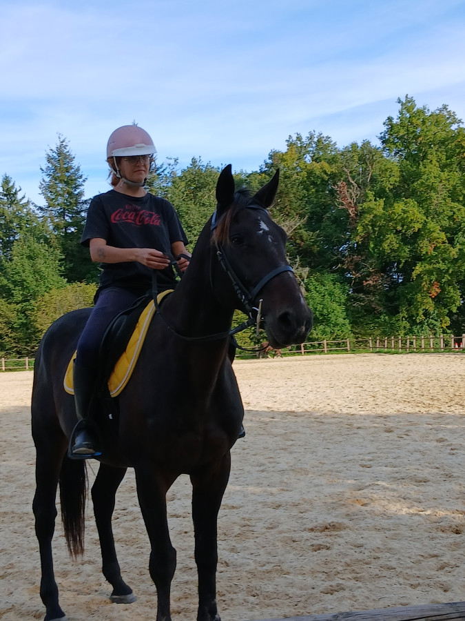 Seance pas trop mal , il m’a fait 2 très gros galops donc 1 j’ai cru qu’on allait foncer dans la barrière très clairement et 2 galops normaux. Et le reste que du pas du pas et du pas
