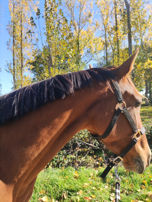 grand hennissement et tout , content d'avoir sa bouffe , même tardivement