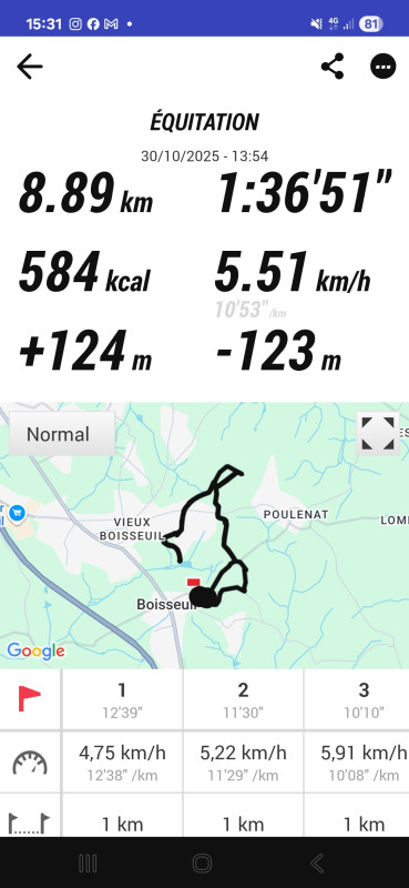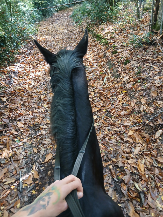 Donc balade casi que au pas ( Sauf pour moi ou je me suis octroyé 2 bons petits galops dans un petit chemin super , a l’aller et au retour)