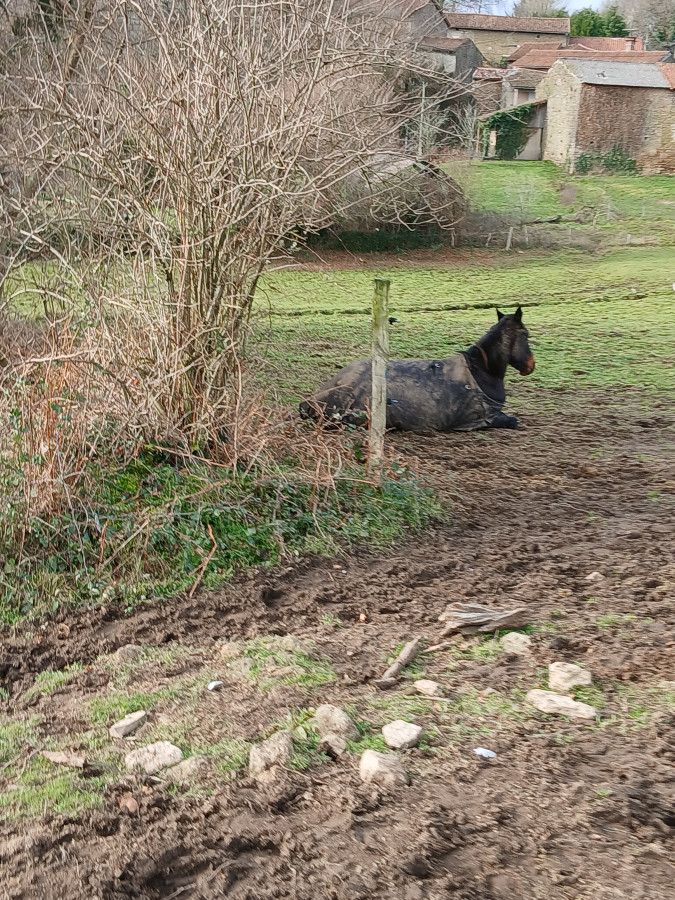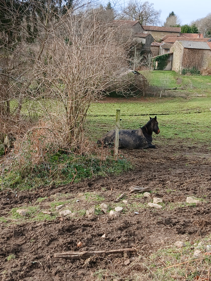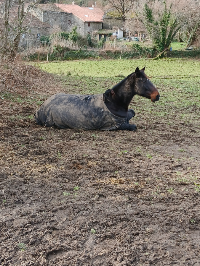 Bon ba nous grosse chute pour nous deux aujourd'hui en sortant du champs... J'ai douché et massé à l'arnica, il ne boitait pas mais c'était chaud... J'y retourne demain en espérant avoir éviter l'entorse