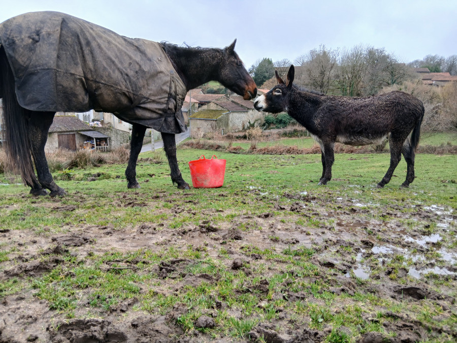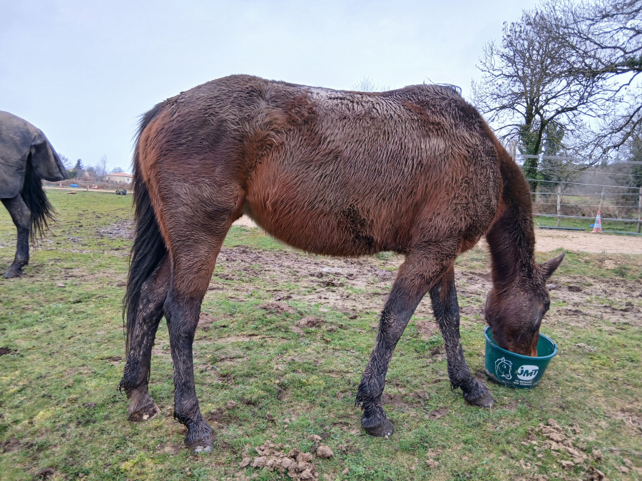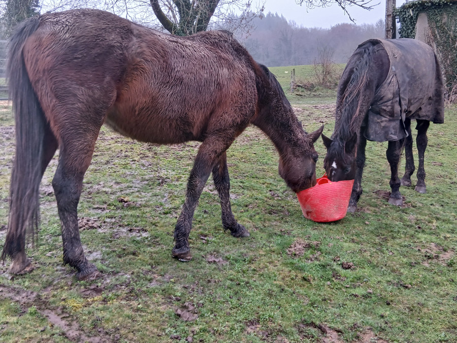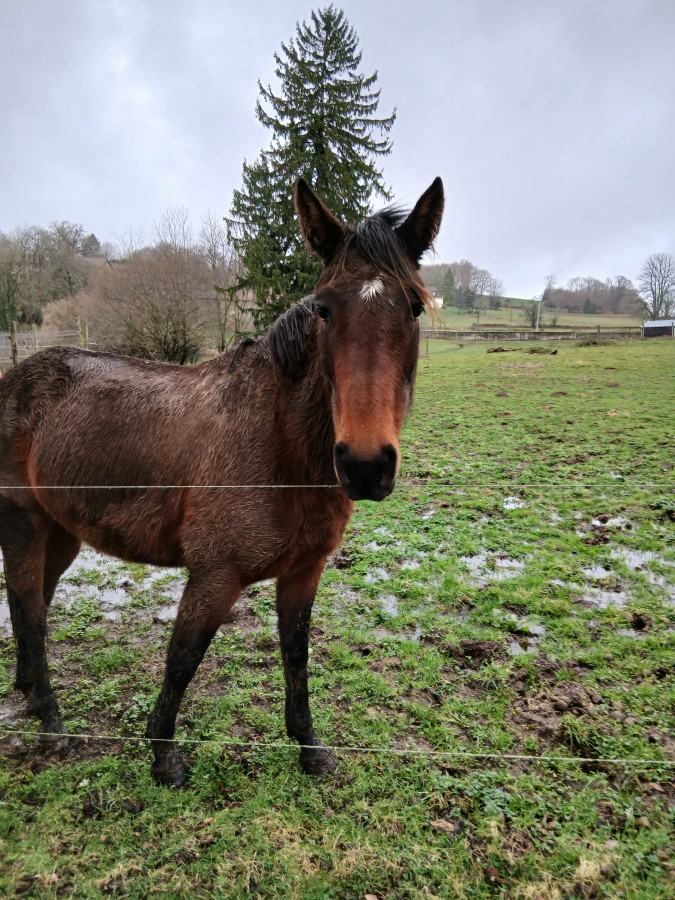 Apres j’ai ete donne la popote au cheval de ma copine dans un autre champs..