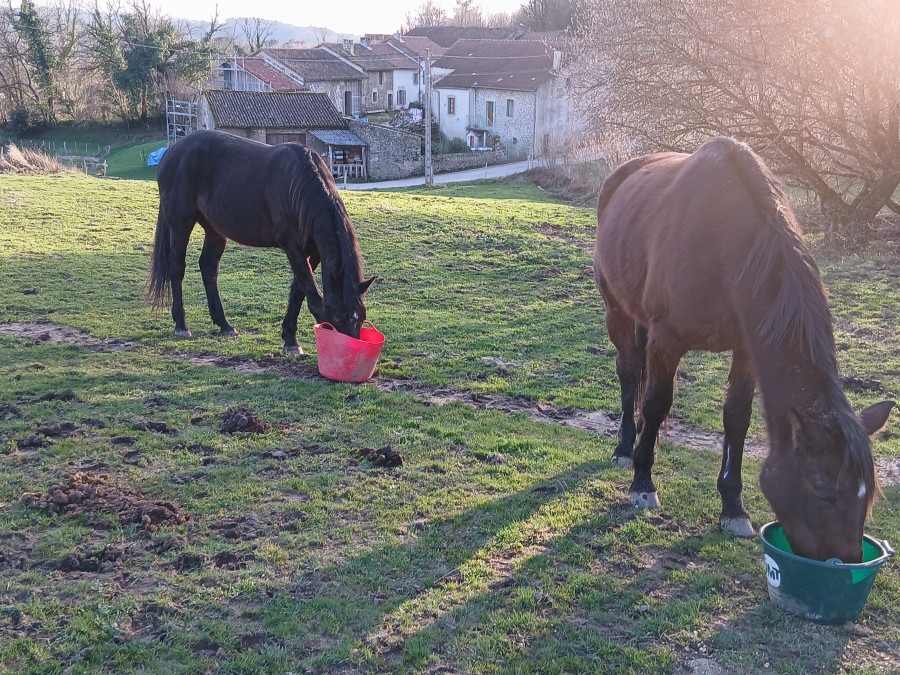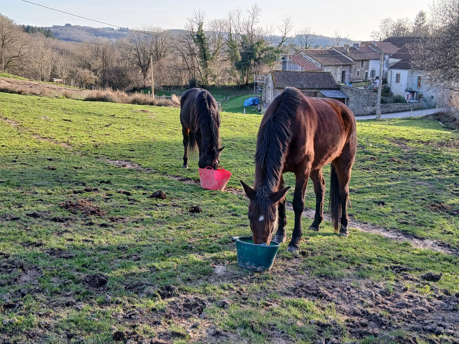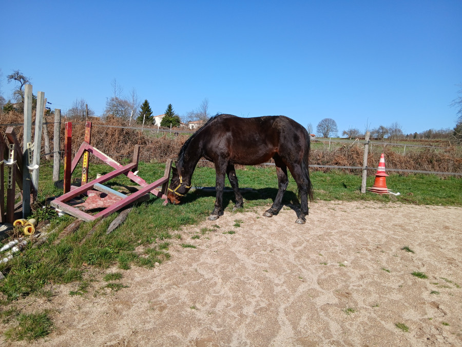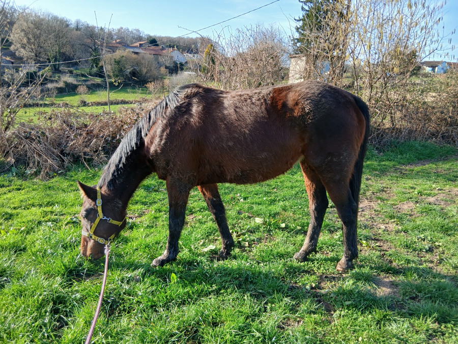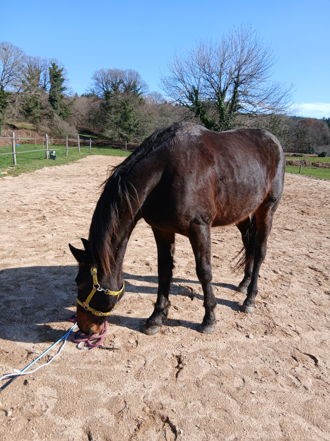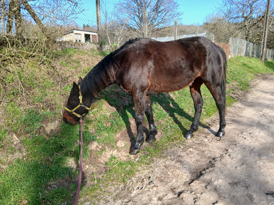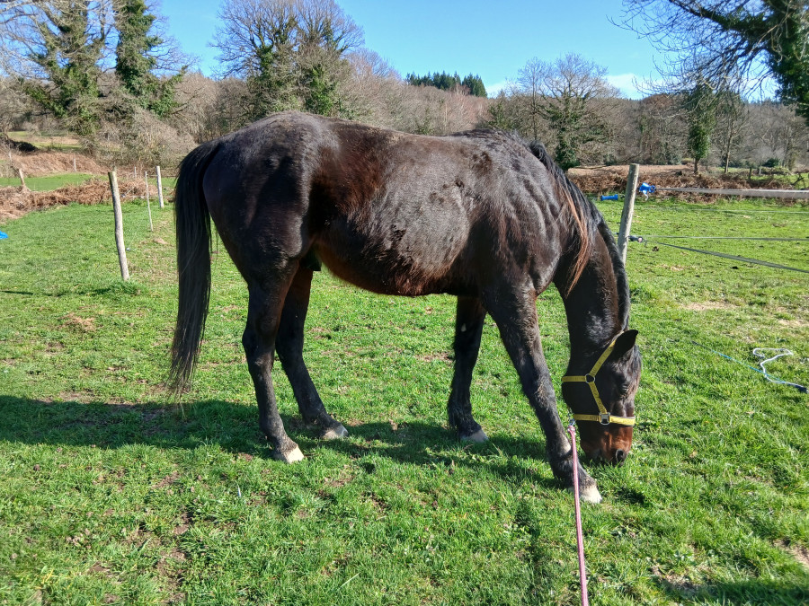 Puis douche des membres et soin , bon brossage, il perd pas mal ses poils et retour au pré.