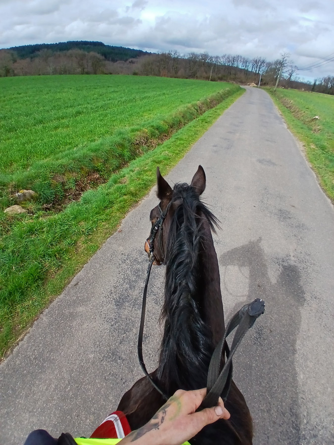 On a fait. 2 3 petits trot bien sympa et apres Monsieur commençait a chauffer , coup de cul , coup de dos Monsieur voulait aller a fond les ballons , il etait frustre mais je préfère l’avoir calme au pas ou au petit trot avant de retenter les plus grosses allures avec monsieur