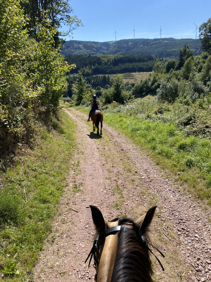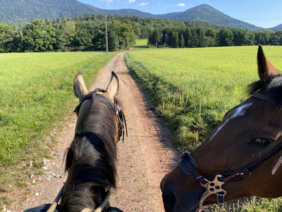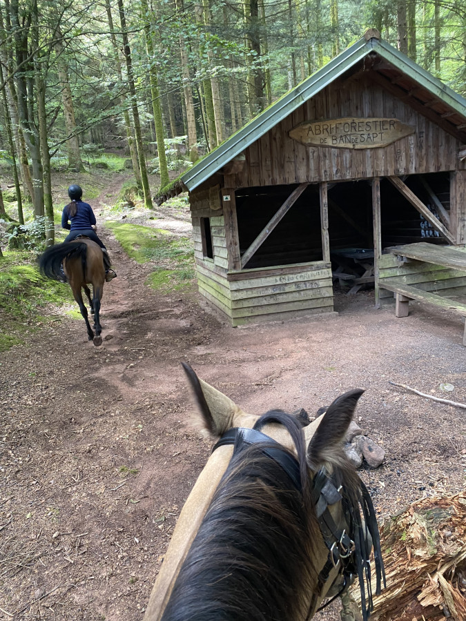 Et en effet on a pris le temps, on a beaucoup marché, profité et les Vosges c’est beaucoup de montées aussi donc 2h pour 20km ça me parait compliqué. Je précise: la jument de mon amie est une PS active.
