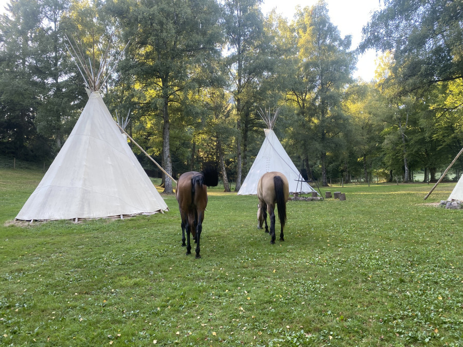 Par contre dans arrivées dans le gîte pour déposer le matos la veille: surprise dans le pré supposé aux chevaux plein de pousses d’érables sycomores. On a mis les chevaux autour de nous, c’était clôturé aussi donc ça a été.