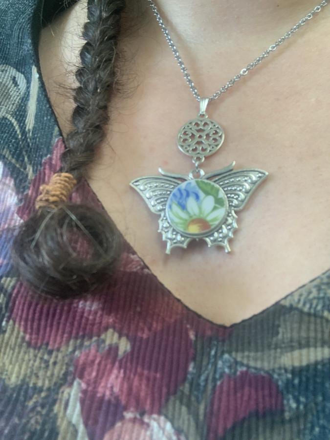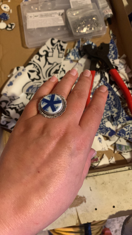 Hé bien je concilie les deux : ma famille m’a offert une meuleuse à eau pour Noël, un super outil. Je peux ainsi transformer des assiettes chinées un peu partout (y compris et surtout celles qui ont moins de valeur car ébréchées…) en bijoux…