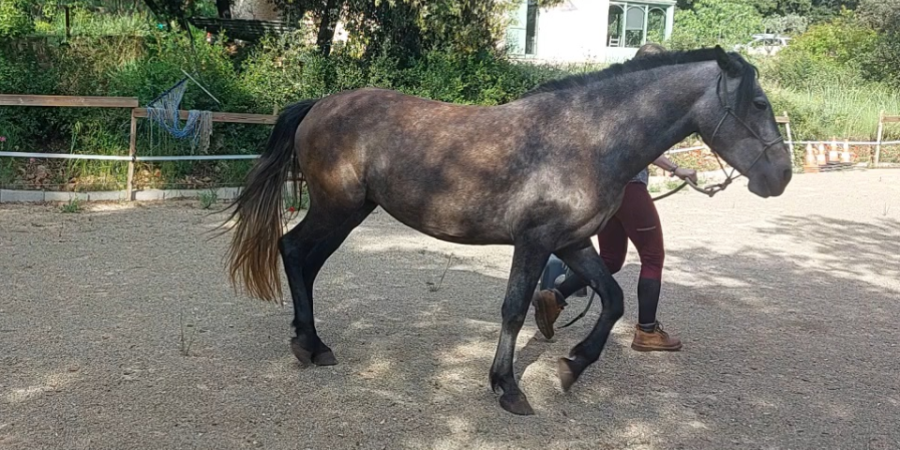 Après quelques mois, on a repris la rééducation à pied, dans le parc, avec sa pouliche. Puis, progressivement, en dehors du parc avec des séparations très courtes avec Constance.