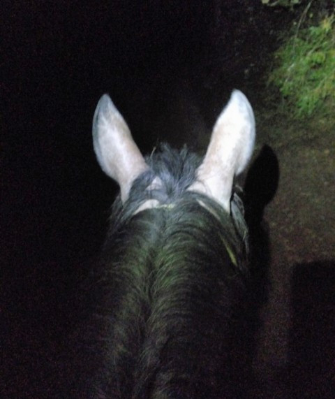Un truc lui fait peur dans le bois, elle précipite son trot et embraye sur une espèce de galop désuni. Je demande de repasser au pas... Et...Rodéo ! Clairement, ma demande l'a contrariée.