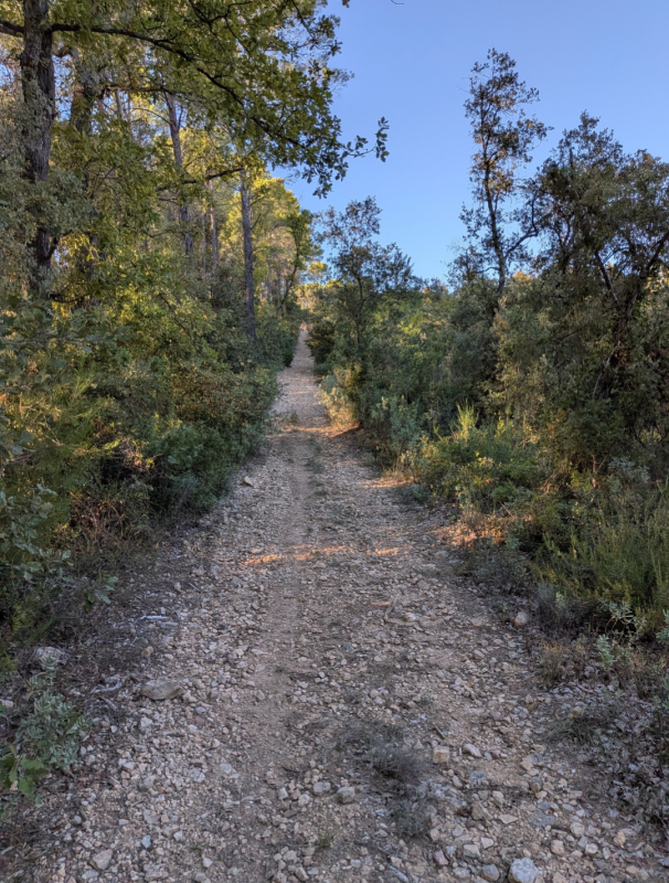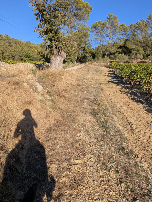Je ne sais pas si on se rend bien compte de la pente... C'est la descente que l'on fait à l'aller et au retour. Je ne la fais jamais en selle car c'est trop raide et vraiment difficile pour les louloutes