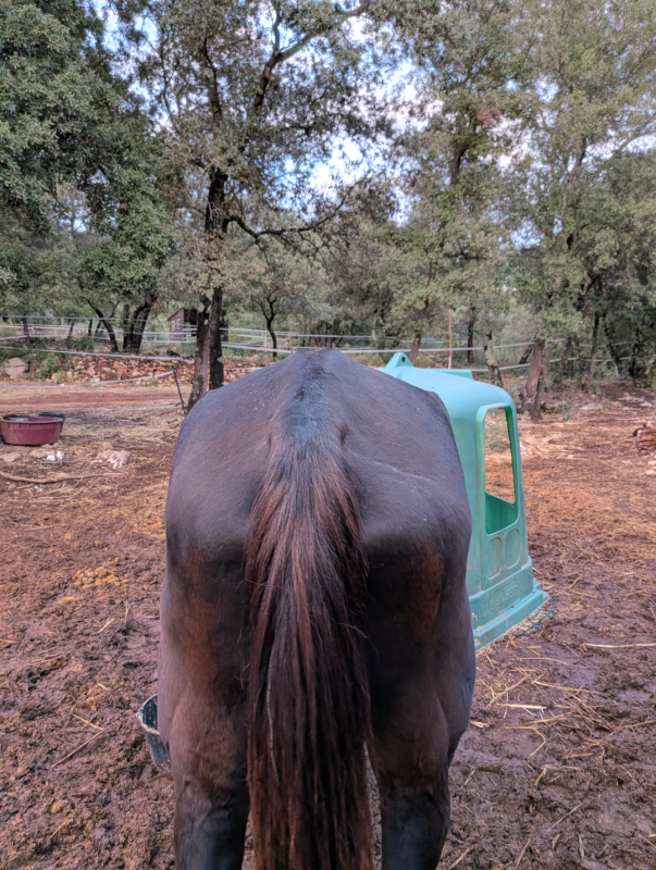 Donc encore quelques semaines dans son paddock (en fil à fil avec les filles), et quand il aura bien repris, je remettrai tout le monde ensemble en journée.