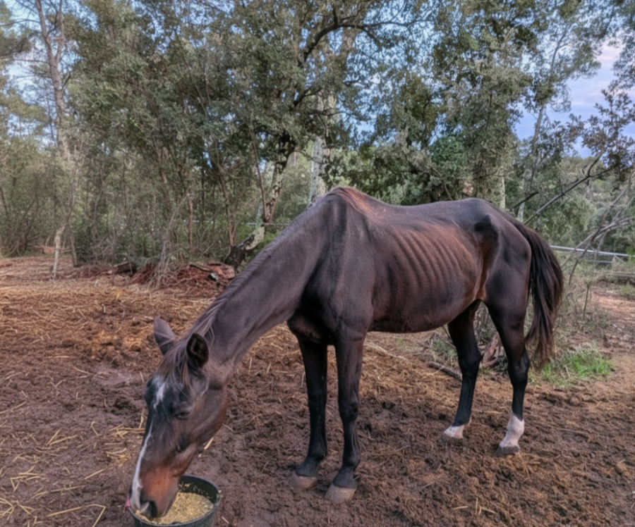 Et bien, ce même Papinou va beaucoup mieux ! Il remonte la pente. Il continue de prendre du poids et, honnêtement, pour un vieux cheval qui a entre 30 et 32 ans, il ne fait plus son âge ! Il commence même à reprendre au niveau du dos!