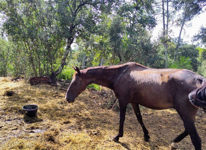Prince n'est pas mon cheval, il m'a été confié par la fille de son propriétaire, qui est malheureusement décédé début 2025. Les propriétaires (la fille du monsieur décédé, son mari et ses proches), se relayent pour nourrir et abreuver le loulou, mais ils habitent tous loin du pré, donc ce n'est pas tenable pour eux de s'en occuper sur le long terme.