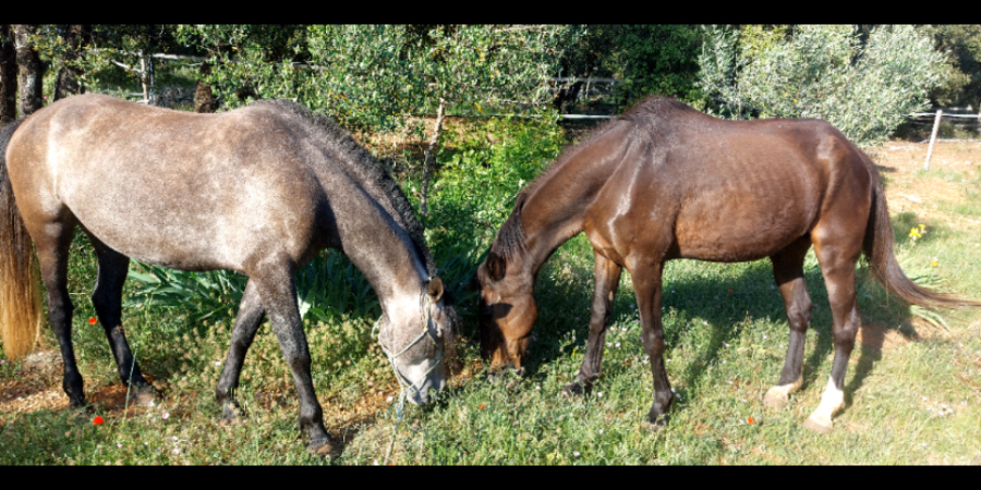Je pars en vacances une semaine, ma voisine s'occupe des chevaux, et je prie pour que Papinou ne refasse pas de crise. Finalement, la semaine est plus fraîche que prévu. Cela lui fait le plus grand bien.