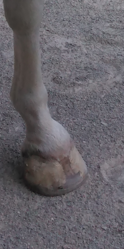 Dès son arrivée, je continue de le complémenter en wafer et en grain. Il a besoin de reprendre pas mal d'état. On ajoute aussi un cmv dans la ration, il n'en n'a probablement jamais eu. Et il a évidemment accès au foin à volonté.