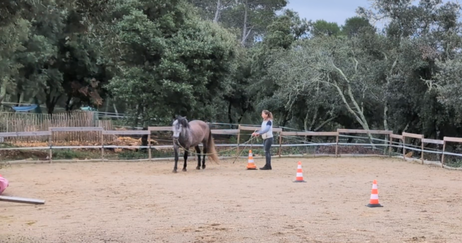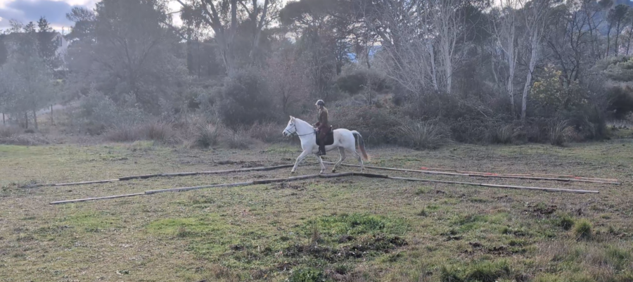 Résultats, on a réussi à boucler nos exercices sans problème et dans le calme. Nous n'avons juste pas pu faire la ruelle en L au galop car le terrain était trop gras et glissant.
