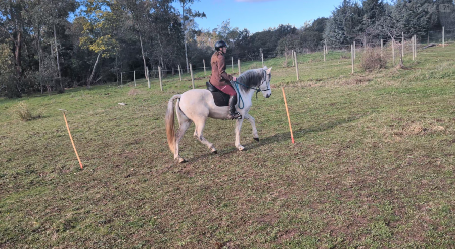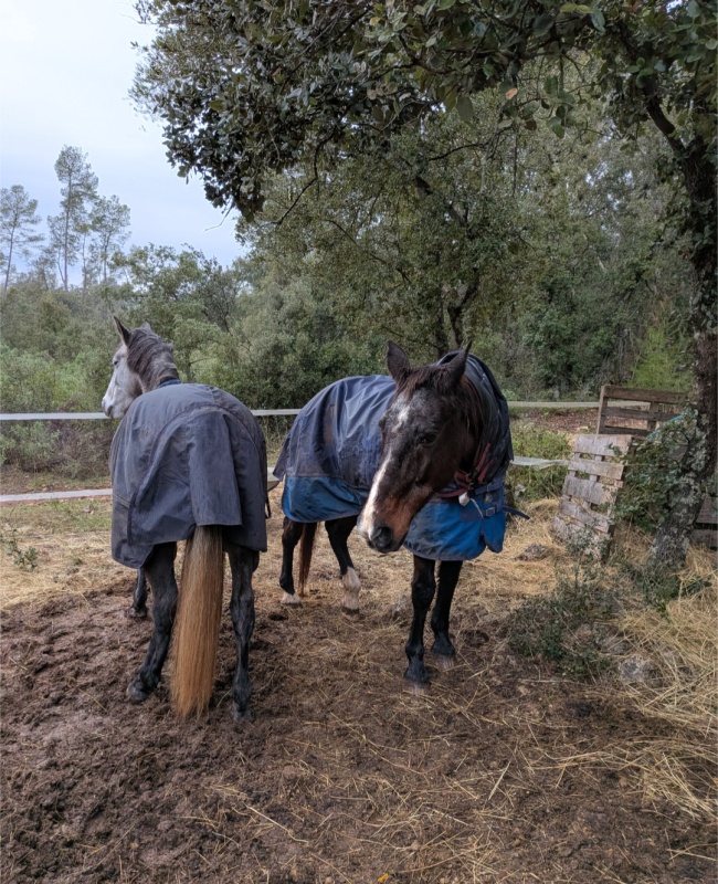Entre la nouveauté, la pluie et le vent, autant vous dire qu'Honnête avait de l'air sous les sabot! Même la jument de ma copine, d'ordinaire si calme et posée, était stressée et avait la cuisse légère !