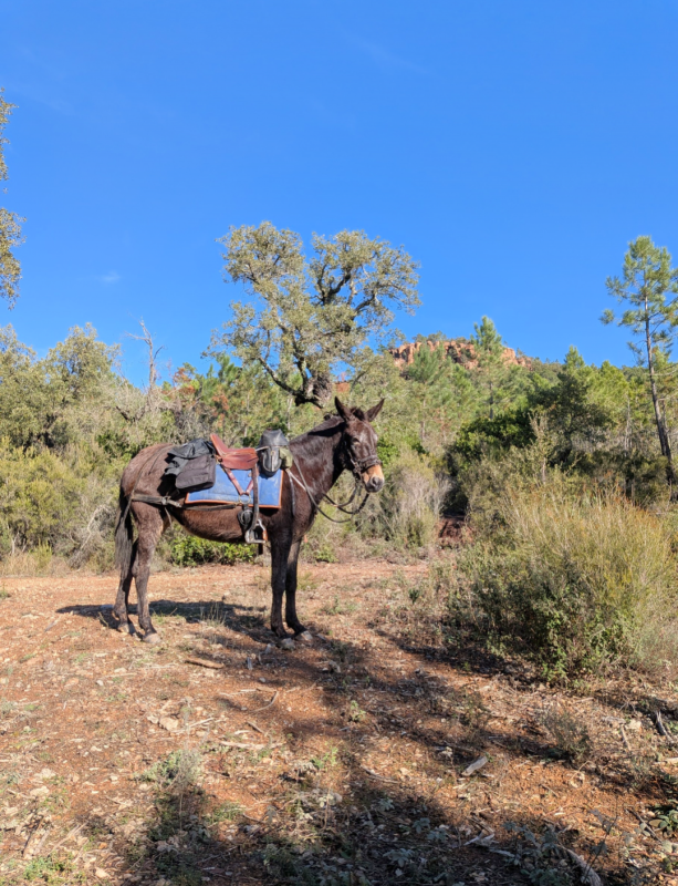 On a quand même réussi à faire quelques exos, et entre temps, le copain muletier est arrivé avec la plus belle mule du Var (et de France, en toute objectivité)