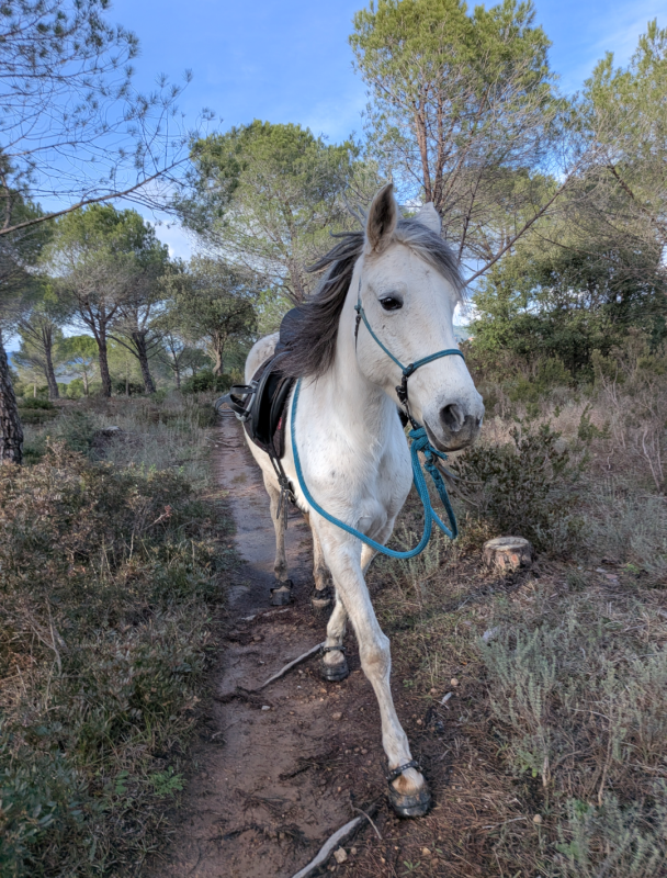 Sur la fin, j'ai pas mal marché car Honnête n'avait plus d'énergie. Il faut dire que Mascotte et Suchard (la mule) ont un pas de base plus rapide qu'Honnête.