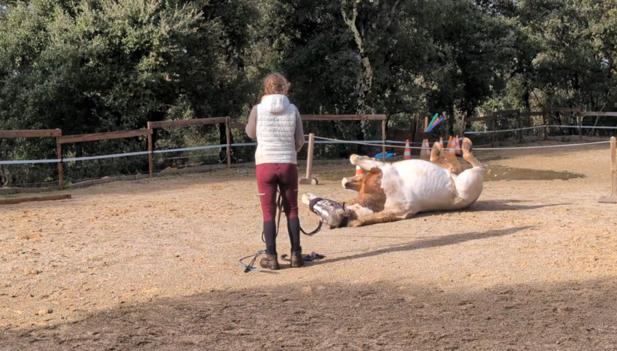 On commence par une bonne roulade, car le poil d'hiver commence à gratter!
