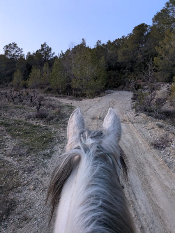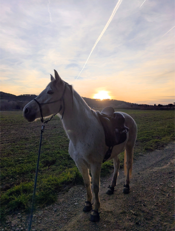 Comme l'écurie est vraiment près de la maison, je n'ai pas eu besoin de sortir le van. Nous devions être à 11h30 en carrière, donc à 9h j'attrape ma bestiole, la chausse, la selle et à 9h30 nous nous mettions en route.