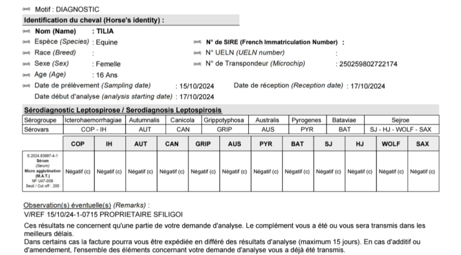 Tu avais fait une analyse de sang un peu poussée ? Toutes les maladies à tiques, la leptospirose et des dosages vitamines/ minéraux ?