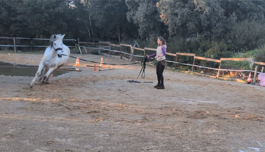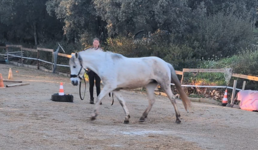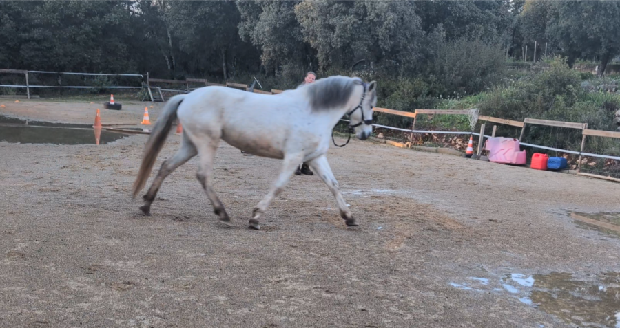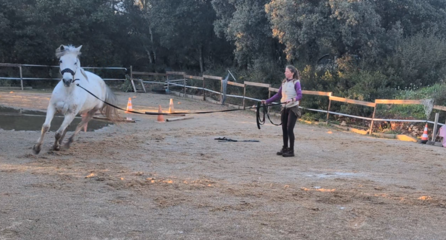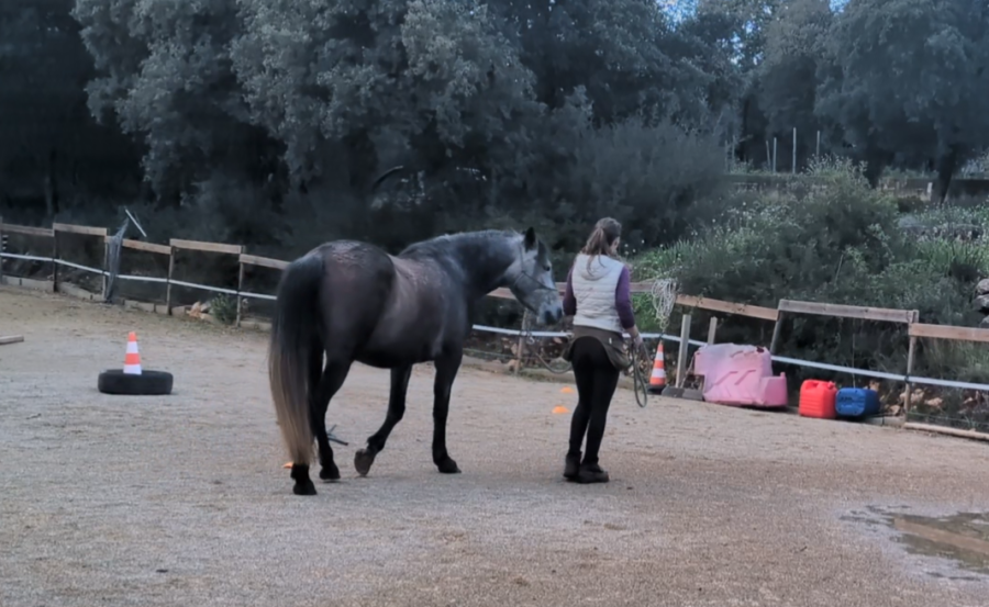 Puis petite longe avec Honnête. L'impulsion au trot est de mieux en mieux et elle commence à mieux s'équilibrer (même si c'est loin d'être parfait).
