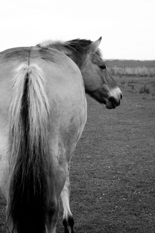 Voici la photo que j’ai réussi à prendre du poilu ce matin. Ce n’est sûrement pas la plus esthétique ni la mieux réalisée, d’ailleurs elle n’est même pas très bien cadrée, mais je l’aime bien. J’ai décidé de la passer en noir et blanc : toute simple, sans artifices, il a d'ailleurs encore un peu de boue sur la croupe. Petit bonhomme.