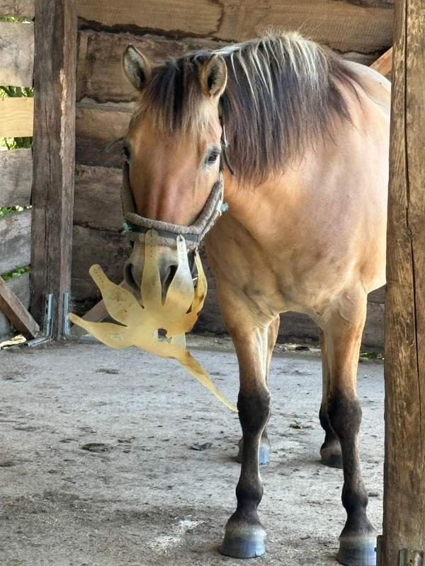 Généralement, elle lui met des petites résines aux antérieurs, mais il les perd. Elle pense donc opter pour des hipposandales.