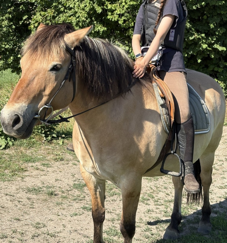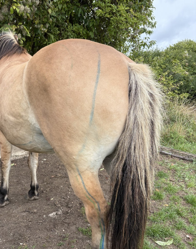 Amour est sensible des pieds, il a un petit déséquilibre qui ne le gêne pas au quotidien, mais ça reste là, et ça dépend des jours, du moment... Sa propriétaire travaille beaucoup en shiatsu et massage (elle-même, elle est formée), et pense que ce déséquilibre peut venir du foie (le méridien pied-foie est lié en médecine chinoise). Elle cherche une alimentation et des techniques de travail qui lui conviennent. Ça progresse doucement mais sûrement.