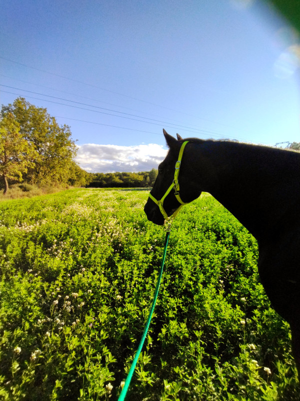 La luzerne, c’est vraiment top, très riche, mais comme tout, faut pas en abuser. Et faut que le cheval ait un peu d’activité à côté. Un cheval qui est au pré et qui va brouter un peu de luzerne 30 min à 1h quelques fois dans la semaine, pour moi y’a pas de problème.