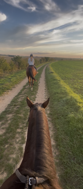 Depuis juillet, j’ai pris une DP (L) sur Sam, ça me permet de ne pas culpabiliser quand j’ai la flemme de le bosser. Et L m’aide aussi à faire les chevaux parfois je m’accorde une soirée chill sans poney quand elle vient (), elle gère tout et ça se passe super bien !