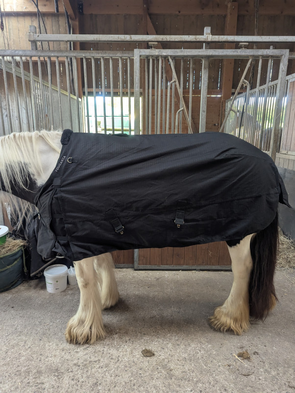 Soit prêt de couverture d'autres gentils proprio qui avaient des chevaux avec la même taille (ça, j'ai trouvé assez vite qu'il fallait une 150 cm), soit en achetant pas cher en occasion, soit en faisant attention de pouvoir rendre (Décathlon par ex ou sellerie qui accepte les retours de couvertures essayées avec un drap dessous)