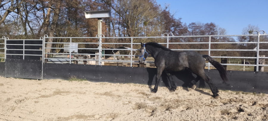 Ensuite retour à l'écurie, je l'ai mis en carrière à la base pour qu'il se roule mais on a trouvé un nouveau copain, Odin le magnifique percheron de bientôt 2 ans