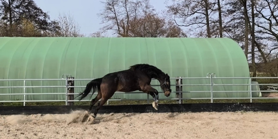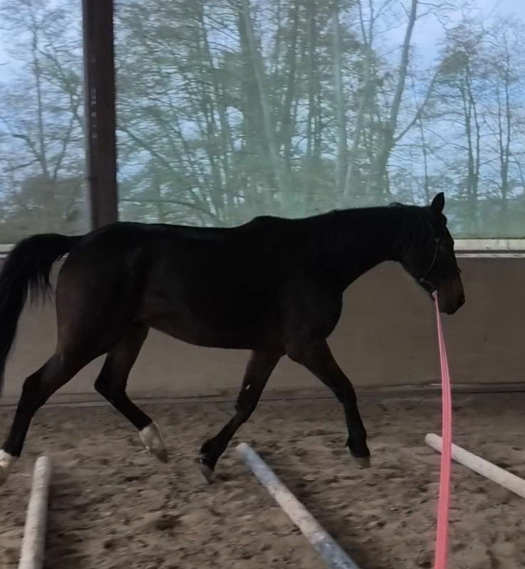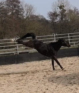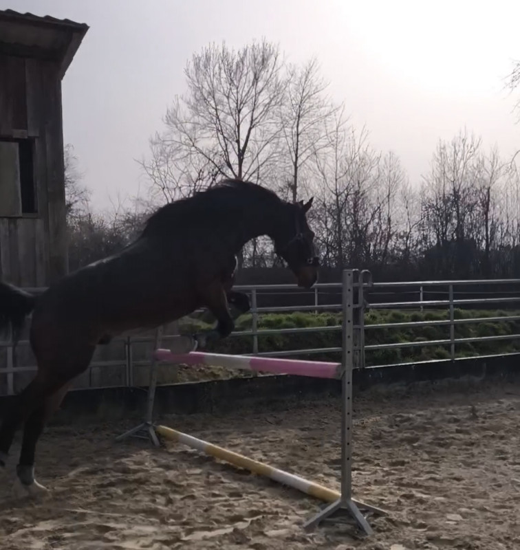 Aujourd'hui ils avaient prévu de la pluie, il y avait du vent et une meteo très tangente donc on est restés à l'écurie et c'était travail à pied avec des barres au sol, le fameux reculé qui est de mieux en mieux, on affine le départ au galop à la voix, puis grosse roulade,