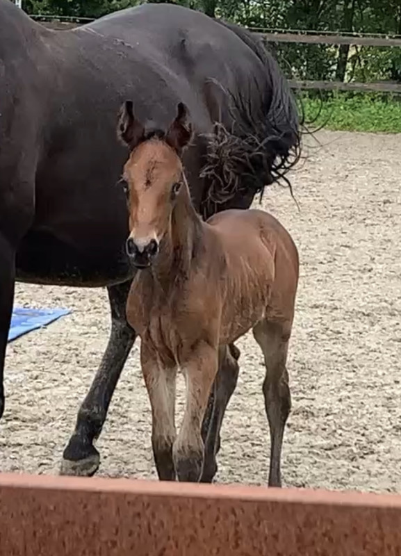 Cette année elle m’a donné une pouliche avec un père SFO Joli Cœur du Cèdre, je suis fan pour l’instant du résultat, pouliche intelligente, proche de l’homme et modèle intéressant.