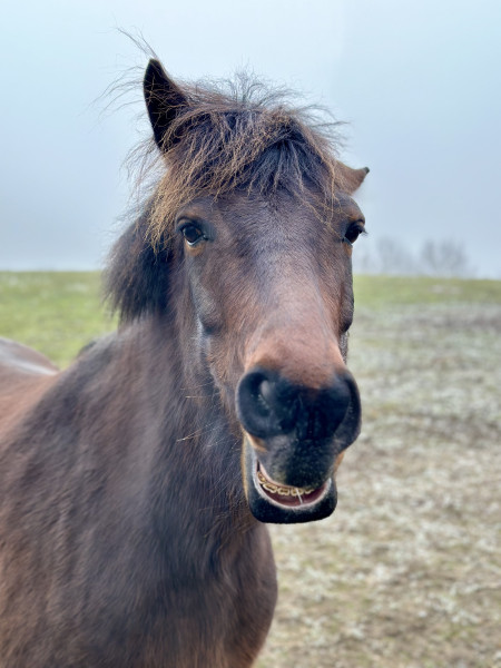 Avec mon poney, on ne fait actuellement que du travail à pieds et de la balade.