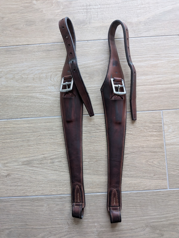 Je vends une paire d'étrivières Devoucoux Confort taille S marron.